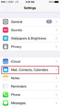 - Tap on the menu item of "Mail, Contacts, Calendars".