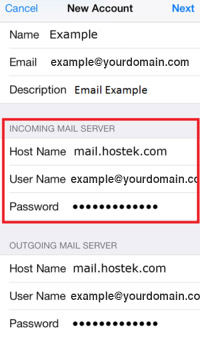 - Scroll down and Under Incoming Mail Server, enter the following: